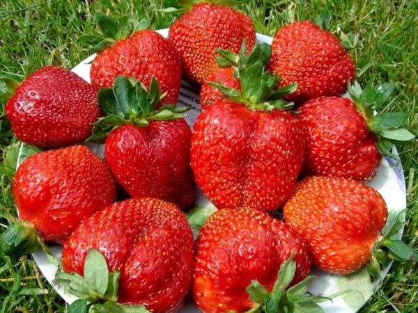 - Очень крупные ягоды, ярко-красные, блестящие, в среднем весят 30-60 г (рекордсмены достигают 100 г !);