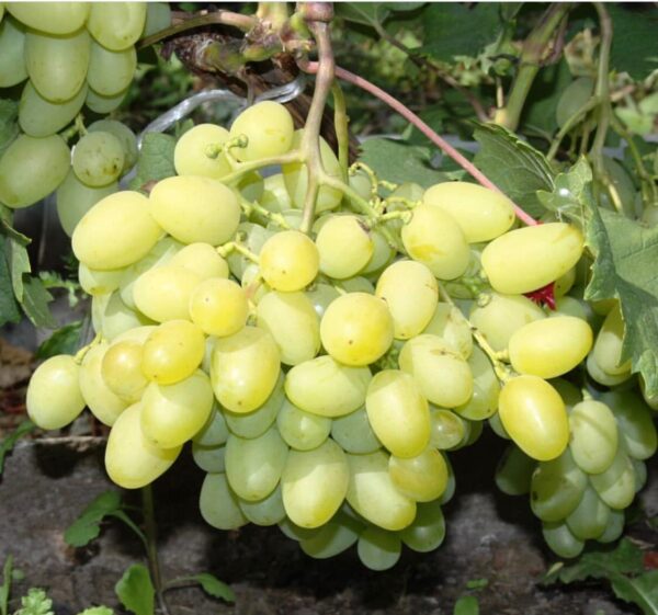 - Кожица плодов при созревании янтарная, мякоть сочная, имеет сбалансированный сладкий вкус и мускатный аромат;